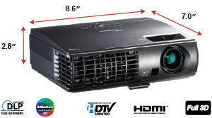 Optoma W304M WXGA 3100 Lumen Full 3D Portable DLP Projector with HDMI